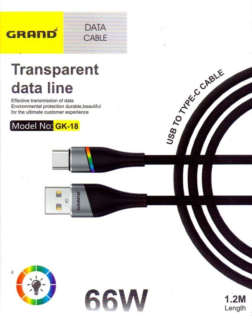 کابل تبدیل USB به Type-C گرند مدل GK-18 یکی از گزینههای ایدهآل برای کسانیست که به دنبال کابلی مقاوم، سریع و زیبا هستند. این کابل با طول ۱۲۰ سانتیمتر، برای شارژ و انتقال اطلاعات از طریق درگاههای USB و Type-C طراحی شده و با تمامی سیستمعاملها و دستگاههای دارای پورت تایپسی سازگار است.